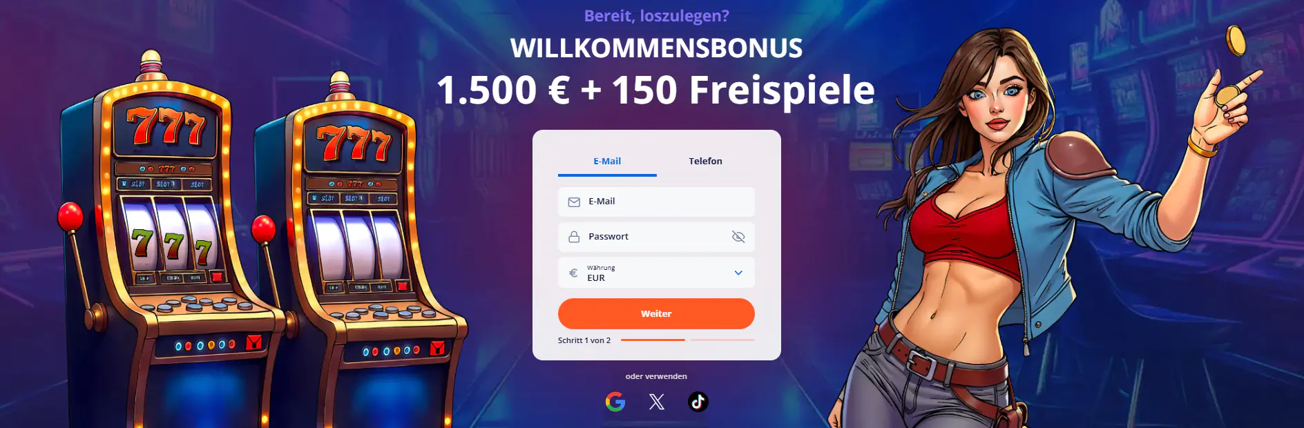 - Bonus: 150 % bis zu 500 €